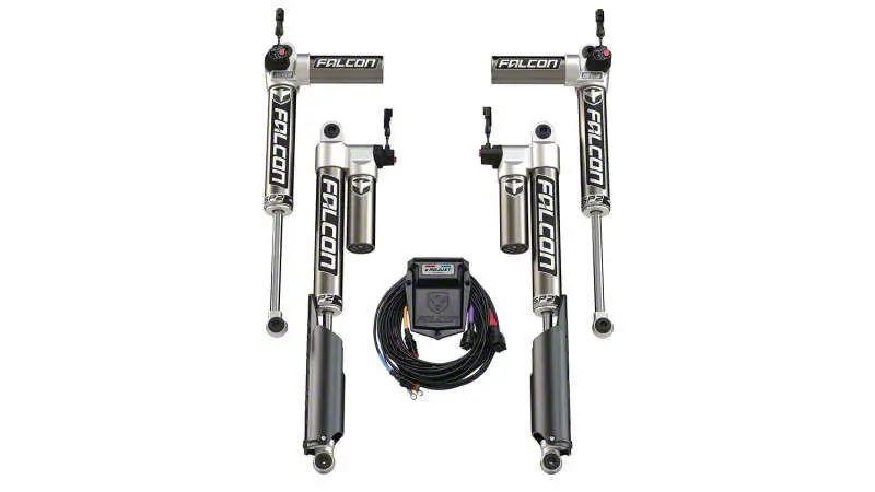 Enhanced All-Terrain Driveability. Let your Gladiator conquer the challenging terrains with confidence by using this set of Teraflex Falcon SP2 3.5 e-Adjust Piggyback Front and Rear Shocks for 0 to 1.50-Inch Lifts. This kit equips your Jeep with premium suspension components so that you can navigate the rugged trails with better handling while improving street driveability.