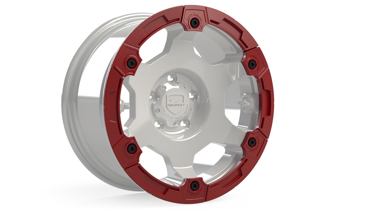 Wheel Split Rash Ring by Teraflex. Enjoy low profile protection for your Gladiator's wheel with the Teraflex Nomad Off-Road Wheel Split Rash Ring with Hardware; Red. In a sleek red finish, this modular system works to replace a single damaged section or multiple sections, constructed using premium-grade polyethylene thermoplastic and HDPE plastic for impact resistance.