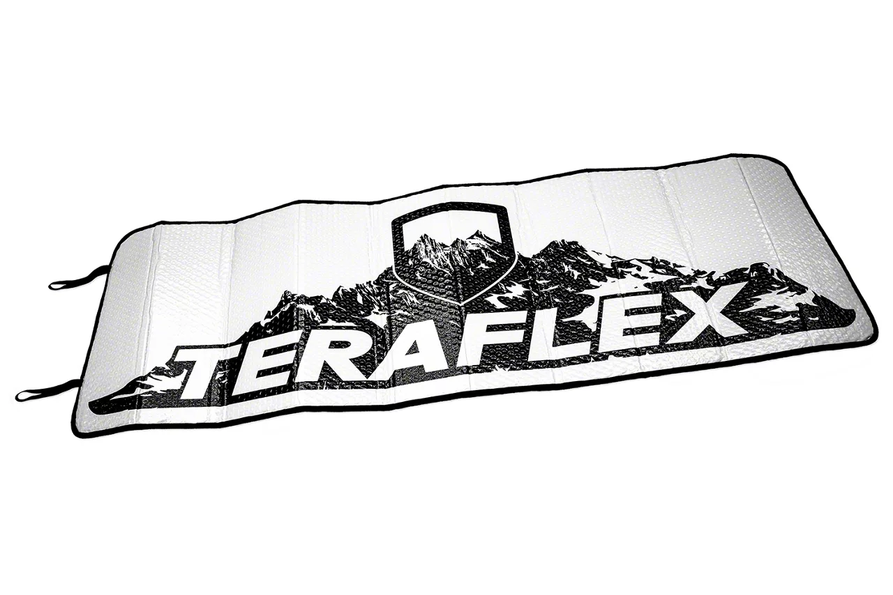 Resilient Multi-Layer Build Quality. This windshield sunshade features an outer shell made from reflective foil that’s similar in composition to Mylar, making it resistant to damage. Meanwhile, this shade gets its main insulative properties via a core made from dual layers of foam. This insulating core also gives this component its structure, preventing it from sagging over time. Additionally, this component features the Teraflex logo and mountain range design to give your Gladiator added style when used.