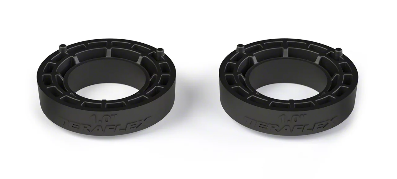 Enhances Ride. The Teraflex 1-Inch Front Coil Spacer Adjustment Kit is designed to provide additional height to compensate for heavy aftermarket bumpers, winches, spare tires or weekend swag. Engineered to properly level your front-end suspension, this cutting-edge manufacturing is sure to enhance your ride performance and driving control.