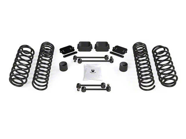 Confident Off-Road Stance. Boost your JL’s performance by upgrading to this Teraflex 2.50-Inch Coil Spring Base Suspension Lift Kit. This suspension system allows you to install larger tire-and-wheel combos that will enable you to tread through various obstacles with ease and confidence. It includes basic, high-quality suspension parts to significantly improve off-road capabilities while maintaining excellent on-road handling.