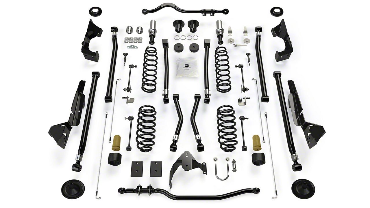Powerful Off-Road Lift Kit. Give your Jeep an unstoppable off-road capability with the Teraflex 4-Inch Alpine RT4 Long Arm Suspension Lift Kit. Apart from improving your off-roader’s clearance to accommodate up to 37-inch tires, this lift kit has also been designed to offer remarkable suspension performance. With the RT4 Long Arm Suspension Lift Kit, dominating the trails becomes even more enjoyable than ever.