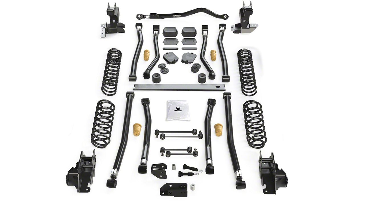 Enhanced Street and Trail Performance. Drive your Wrangler to the rugged terrains with assurance and confidence that it can crawl with optimum stability. This Teraflex 4.50-Inch Alpine CT4 Long Arm Suspension Lift Kit is built for the rough off-roaders looking for optimum trail performance with street stability. It comes with a set of progressive rate coil springs, control arms, sway bar links, and track bar and bracket kit.