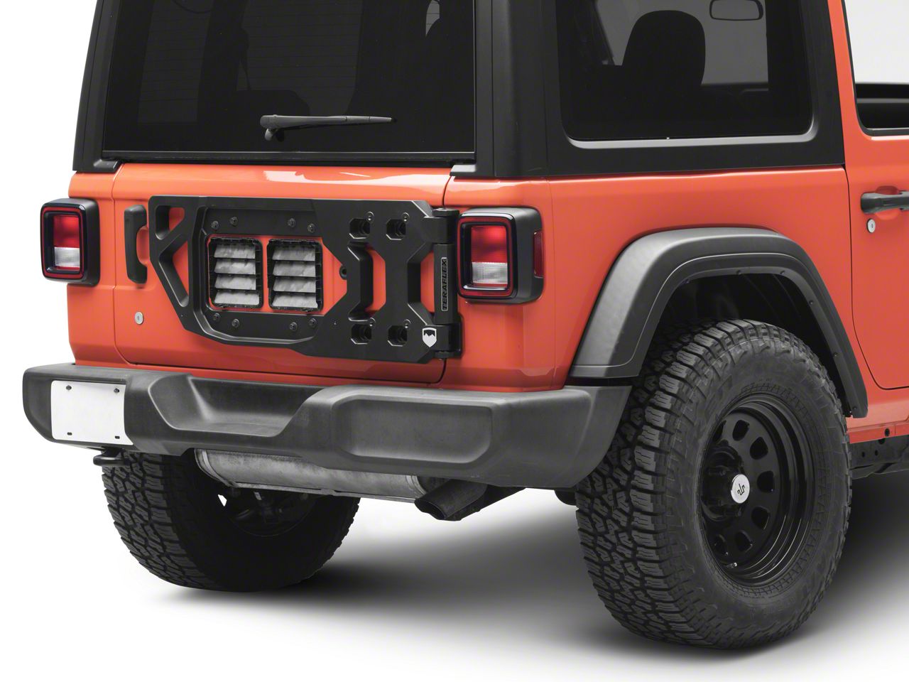 Application. Teraflex Alpha HD Hinged Spare Tire Carrier Kit is compatible with the 2018-2026 Jeep Wrangler JL.