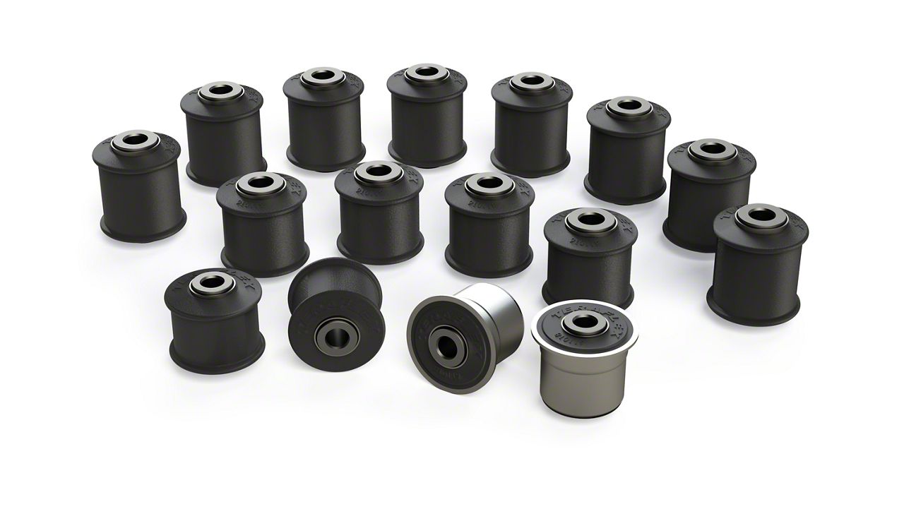 Simple Installation. The bushings’ form factor is similar to standard factory bushings, so you can install them without any modifications to your vehicle. This kit also installs using a standard bushing replacement kit or Teraflex’s bushing replacement tool.