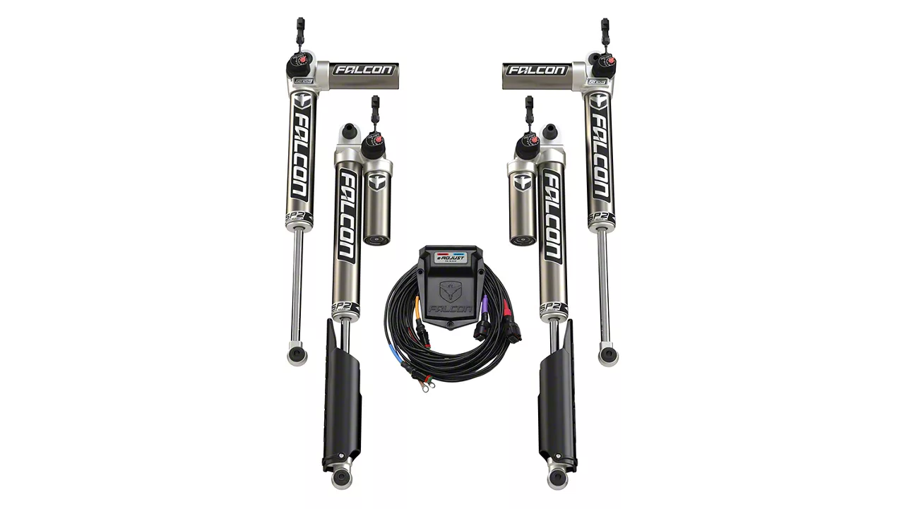 Convenient Adjustable Features. Each of these SP2 3.5 e-Adjustable Piggyback Shocks comes with an 8-position dial to fine-tune your Firm Setting. Aside from this feature, the set also comes with a dual-position in-cab switch so you can turn the damping easily from Soft to Firm without leaving your driver’s seat.