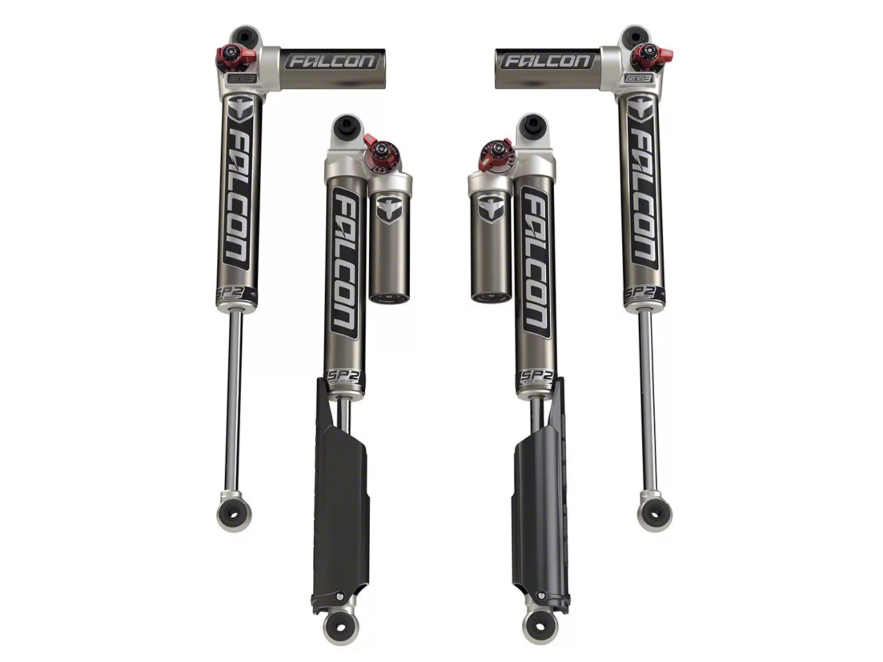Superior Dampening. Take on tougher terrain in your Jeep Wrangler and rock This Teraflex Falcon SP2 3.3 Fast Adjust Piggyback Front and Rear Shocks for 2 to 4.50-Inch Lift to support your drive. Made to offer greater performance on the trail, this kit features larger capacity of shock oil and a stronger dampening force for greater comfort.