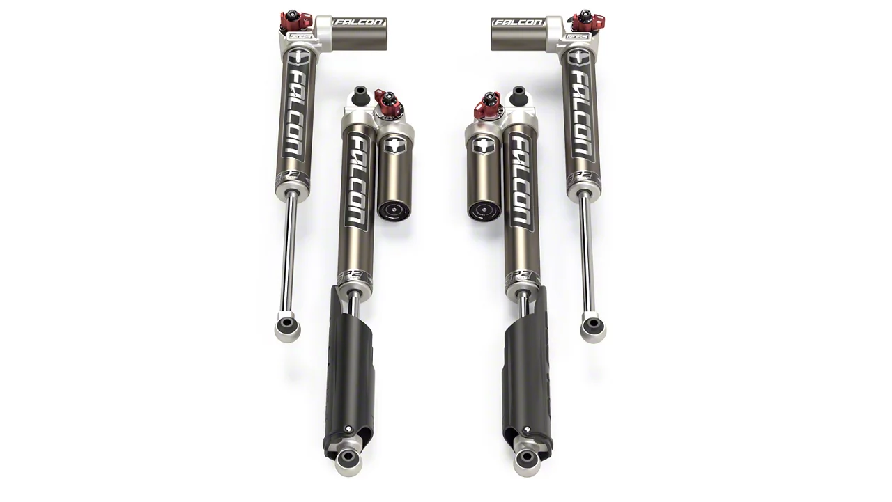 Stable and Controlled Ride Quality. Give your JL a rugged and fierce off-road stance with customized comfort and optimum handling by upgrading to these Teraflex Falcon SP2 3.3 Fast Adjust Piggyback Front and Rear Shocks for 2 to 4.50-Inch Lifts. Using this set of shock absorbers provides your Jeep with an aggressive stance and superior race-inspired performance with a smoother ride quality.