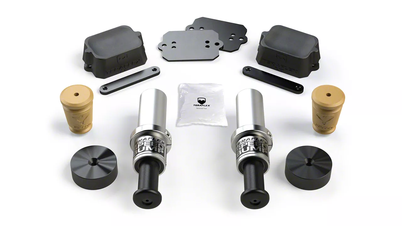 Application. The Teraflex SpeedBump Front & Falcon Progressive Rear Bump Stops is designed to fit 2018-2026 Jeep Wrangler JL models.
