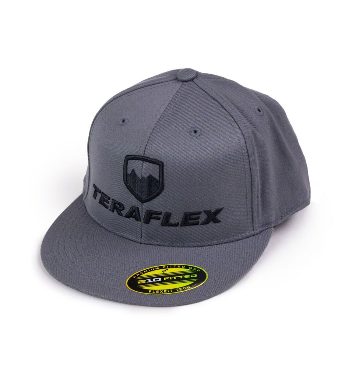 Teraflex Logo Hat. This great looking gray, flat bill, Flexfit baseball cap with matching gray stitching features the Teraflex text logo superbly embroidered in black on the front and the Teraflex emblem embroidered on the back. This Teraflex themed Hat is the perfect piece of attire to show off your love for the Teraflex brand, no matter where your travels may take you.