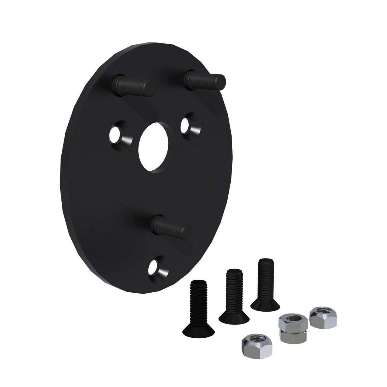 Quality Metal Design. The Teraflex Spare Tire Extension Bracket Kit is made from high-quality durable metal that can withstand the punishment of the outdoors. It has a one-piece circular design, with protruding mounts to accommodate your spare tire. The flat black finish perfectly matches any Jeep color.