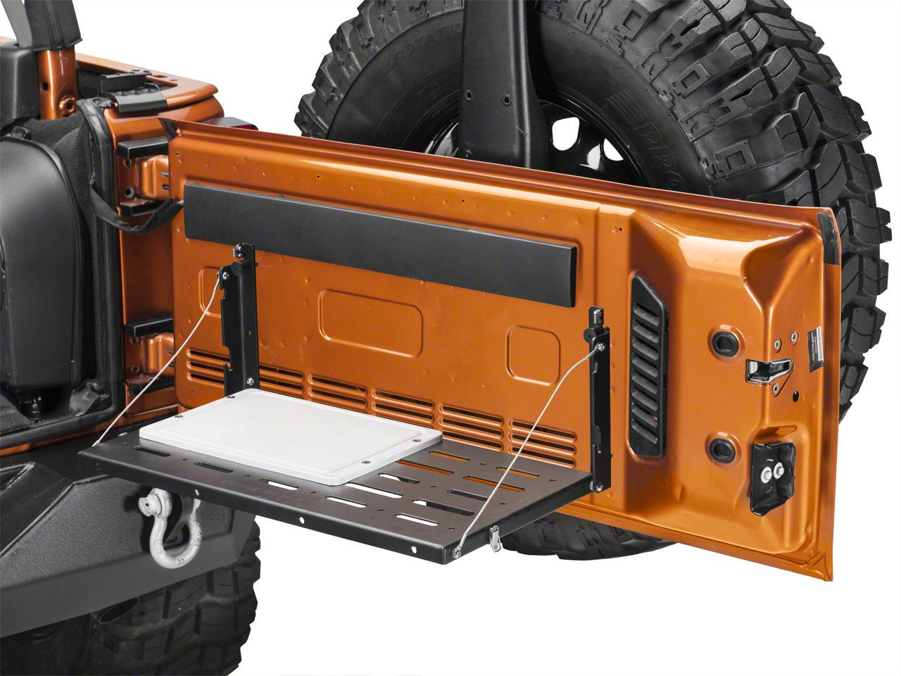 Application. This tailgate table is designed for 2007-2018 Jeep Wrangler JK models.