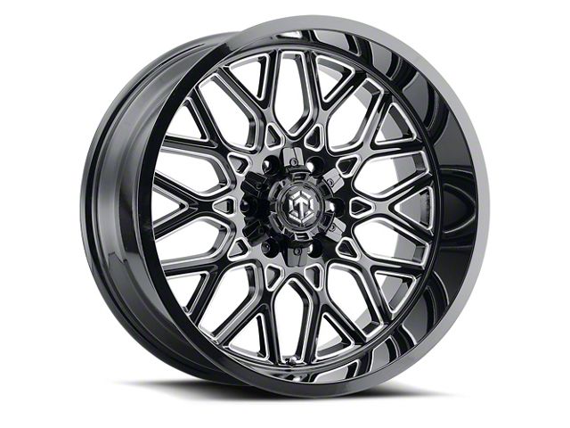 Terra Offroad TR-10 Glossy Black Milled 6-Lug Wheel; 20x10; -25mm Offset exudes sophistication with its finish, offering a sleek and modern appeal to any vehicle it adorns. The design is meticulously crafted to enhance the aesthetic of your vehicle, giving it a distinctive and upscale look. Perfect for those seeking to elevate their vehicle's style, this wheel blends seamlessly with both contemporary and classic vehicle designs, making it a versatile choice for a wide range of vehicles. Its robust construction ensures durability, making it a reliable choice for drivers who value both style and quality.