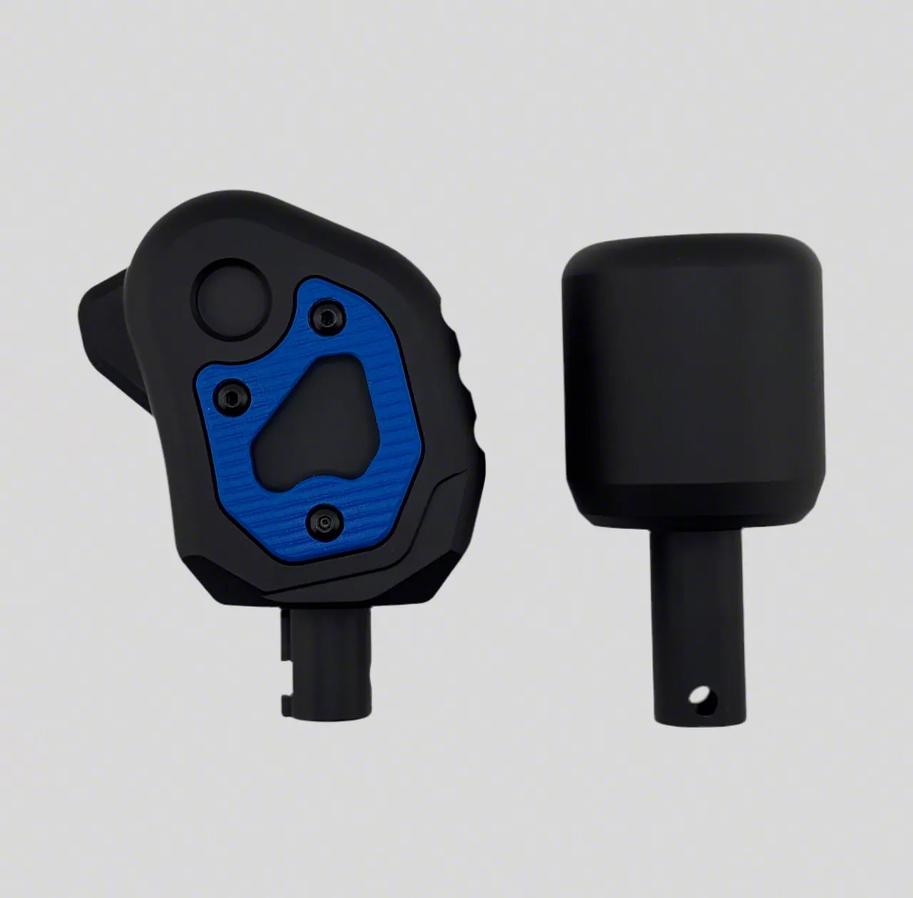 Construction and Appearance. These shift knobs are milled from high-quality 6061 aluminum and finished in rugged Cerakote black. Each knob includes a matte blue insert and engraved design, paired with interchangeable G10 machined side scales for added texture and personal style. The attention to detail delivers a clean, modern upgrade to your cabin’s functionality and aesthetics.