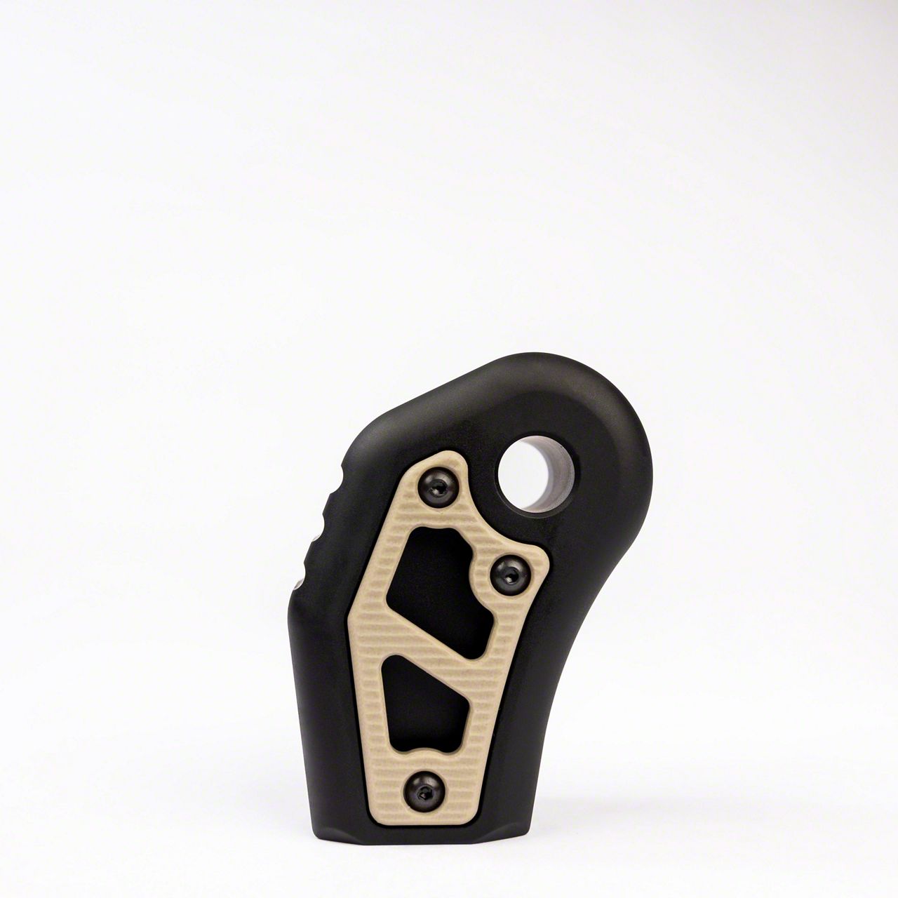 Construction and Appearance. Manufactured from premium-grade hard-anodized aluminum, this shift knob is built to last, featuring a CNC-machined composition and wrapped in a sleek Tan finish. What's more? The interchangeable colored G10 scales add a customizable touch to your Toyota Tacoma's interior.