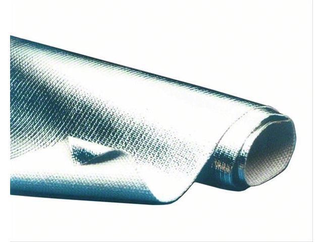 Construction and Appearance. This product is made from durable woven silica material and features a flexible aluminized finish, designed to reflect heat while maintaining flexibility. It measures 10 square feet, providing ample coverage for various applications.