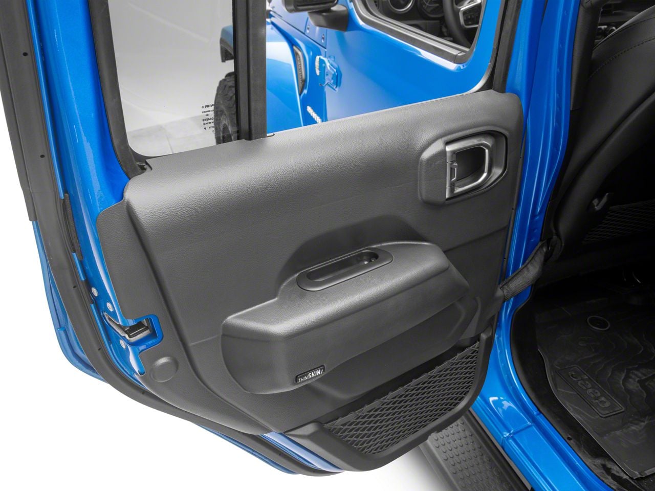 High-Quality Covers. The ThinSKINz Door Protection is made using durable ABS plastic material. Each cover is molded using the dimension of laser-measured door panels. This ensures a highly accurate fit so it won’t look out of place in your Jeep. The door covers are then blasted to a matte finish before the final refinishing to a more attractive satin texture.