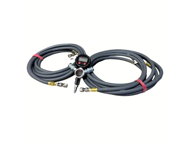 Description. The Thor’s Lightning Air System allows you to air up and deflate all four tires (at the same time!) on your Midsize Vehicles (Jeep Wrangler JK/JL/JT, Ford Bronco, Toyota 4Runner, Toyota Tacoma, Ford Ranger, etc.) This system will also work very well with Four-Seater Side-by-Sides. The system can be used from the front or rear of the vehicle. The system includes the Thor's hammer manifold (choose red, blue, or silver) with a digital gauge and quick disconnect STANDARD! The system utilizes high-diameter (3/8") hybrid rubber-PVC hose that works insanely well in cold temperatures, high-flow brass fittings, high-flow lock-on air chucks, and the incredible high-flow Lightning Fast Hammer Manifold. As a result, this is the FASTEST air system on the market. Other systems on the market use 1/4" diameter air hose, which restricts air flow- that's why we use the biggest and best! The Thor's Lightning Air System is the perfect companion for any air source- single or dual air compressors and PowerTanks. Once you manage the air pressure on all 4 tires at once, you'll never go back to the old fashioned way!