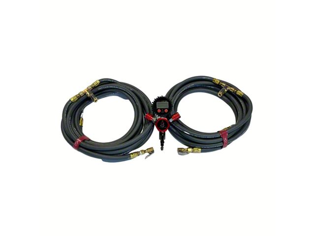 Description. The Thor’s Lightning Air System allows you to air up and deflate all four tires (at the same time!) on your Midsize Vehicles (Jeep Wrangler JK/JL/JT, Ford Bronco, Toyota 4Runner, Toyota Tacoma, Ford Ranger, etc.) This system will also work very well with Four-Seater Side-by-Sides. The system can be used from the front or rear of the vehicle. The system includes the Thor's hammer manifold (choose red, blue, or silver) with a digital gauge and quick disconnect STANDARD! The system utilizes high-diameter (3/8") hybrid rubber-PVC hose that works insanely well in cold temperatures, high-flow brass fittings, high-flow lock-on air chucks, and the incredible high-flow Lightning Fast Hammer Manifold. As a result, this is the FASTEST air system on the market. Other systems on the market use 1/4" diameter air hose, which restricts air flow- that's why we use the biggest and best! The Thor's Lightning Air System is the perfect companion for any air source- single or dual air compressors and PowerTanks. Once you manage the air pressure on all 4 tires at once, you'll never go back to the old fashioned way!