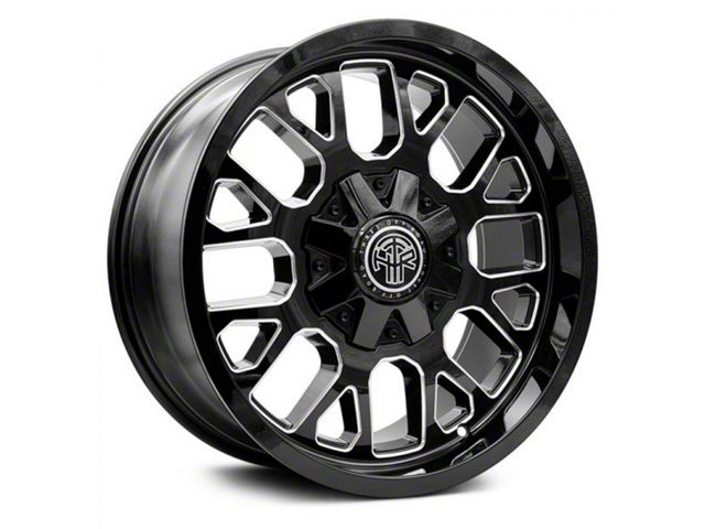 Thret Offroad Attitude Gloss Black Milled 6-Lug Wheel; 20x9; -12mm Offset. The Thret Offroad Attitude Gloss Black Milled 6-Lug Wheel offers a striking balance of style and refinement. Its unique design accentuates the vehicle's aesthetic, while the premium construction underscores its robust nature. This wheel is a perfect choice for those seeking both elegance and a strong visual statement.