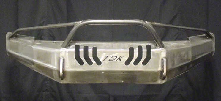 Designed for Extreme Off-Road Use. Throttle Down Kustoms Front Bumpers are designed to withstand extreme off-road conditions. Using CNC laser-cut steel and hand-welded by professional craftsmen gives this front bumper the strength and durability it needs to withstand heavy impacts. Featuring a bare metal finish, this front bumper can be fully customized to match your truck.