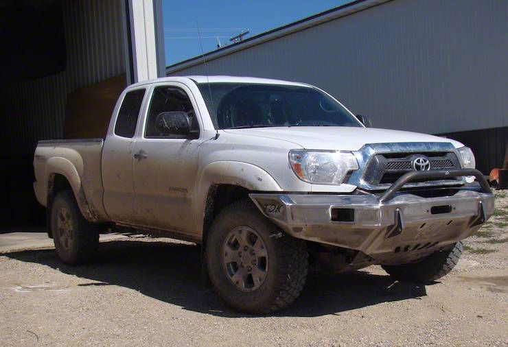 Advanced Construction. This Throttle Down Kustoms Push Bar Front Bumper uses an advanced manufacturing process featuring CNC laser-cut steel hand-welded by certified welders. The result is a bumper that far surpasses other aftermarket bumpers in both strength and durability. This bare metal front bumper can be painted over with your favorite color to make your Toyota Tacoma stand out.