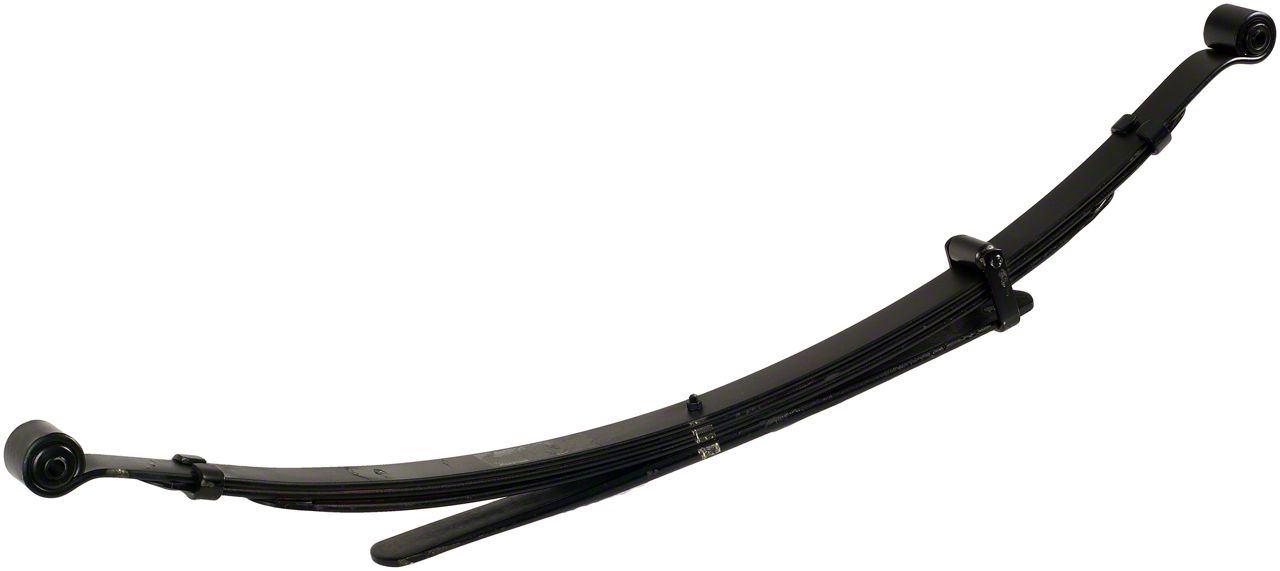 Construction and Features. This leaf spring features a width of 1.9375 inches and is coated in a matte black finish for durability and corrosion resistance. Its two-stage design ensures optimal flexibility and load-bearing capacity, offering improved handling and stability under varying conditions.