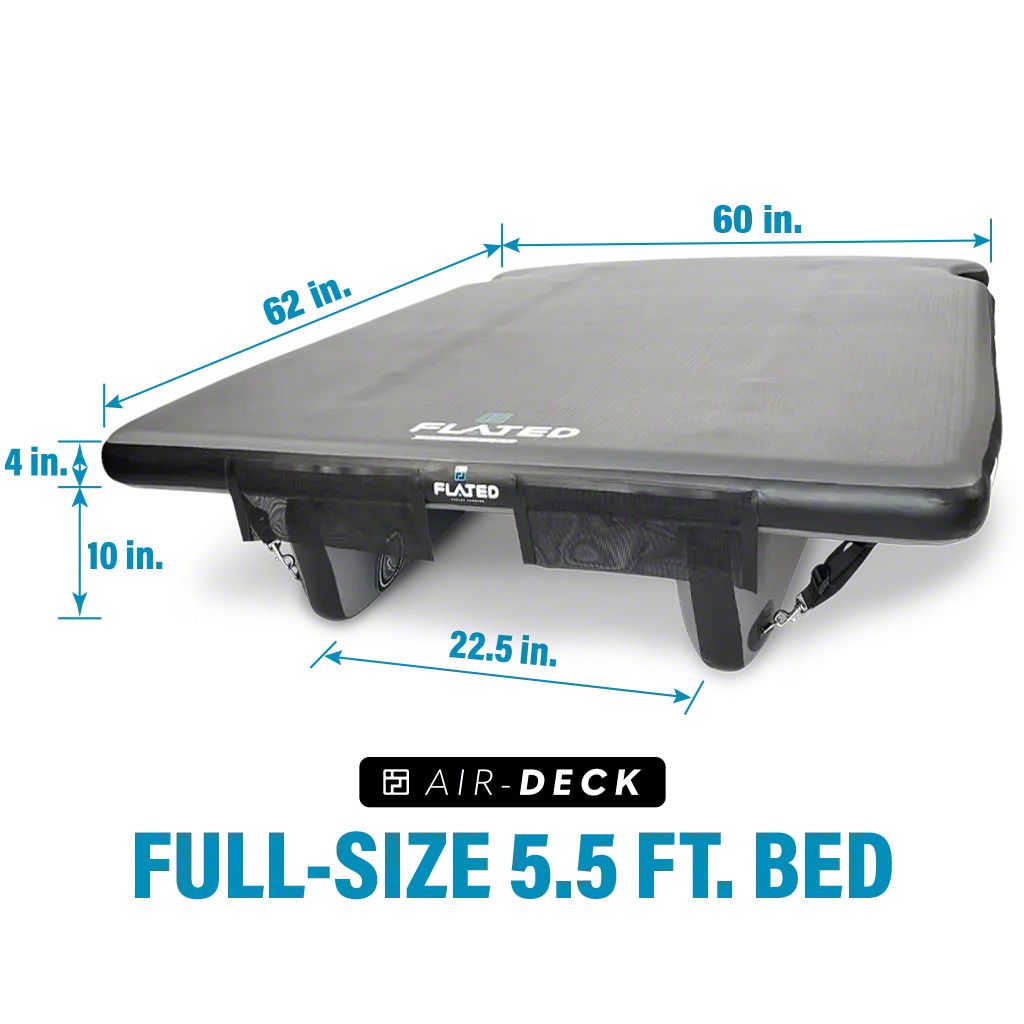 Effortless Inflation, Compact Storage. The Air-Deck Raised Platform's innovative design allows for quick and easy inflation and deflation, using a standard air compressor. When not in use, the platform can be deflated and stored compactly, saving valuable space in your garage or truck bed. This convenient feature makes it easy to switch between different cargo configurations as needed.