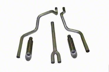 Construction and Appearance. Crafted from 3-inch aluminized steel tubing, this exhaust system is built for durability and corrosion resistance. The polished chrome finish on the dual stainless steel angled tips adds a premium touch while ensuring long-lasting performance.