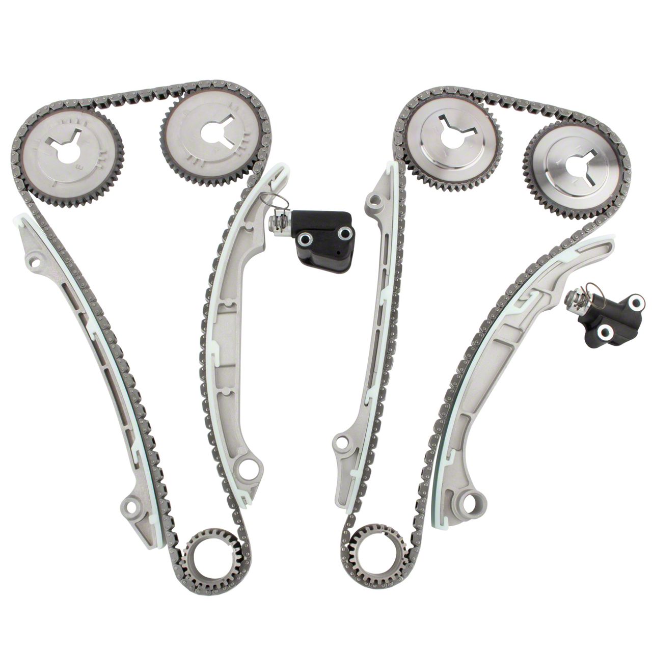 2*Timing Chain (2 require)1*left chain tensioner 1*right chain tensioner 2*Fixed Guides Rail (left & Right) 2*tensioning Guide Rail (left & Right) 5*Sprockets