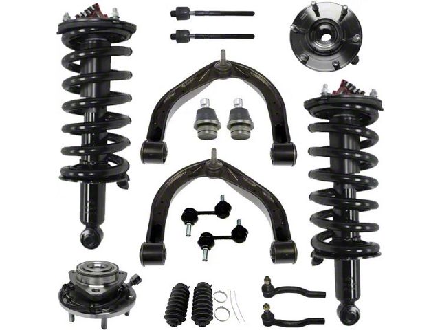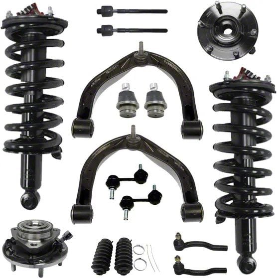 Enhanced Stability and Control. Upgrade the front end of your Nissan Titan with this Front Strut and Spring Assemblies with Upper Control Arms, Sway Bar Links and Tie Rods. Designed for optimal performance and durability, this set includes everything you need for a full front-end rebuild. The high-quality struts in this kit are engineered to provide improved ride quality and road handling. The included Sway Bar Links significantly improve your Titan's cornering and stability, while the high-performance Tie Rods ensure better steering responsiveness. The Upper Control Arms facilitate optimal wheel alignment, contributing to even tire wear and improved fuel efficiency. Whether you're driving on rough terrains or smooth highways, experience a noticeably smoother and more stable ride.