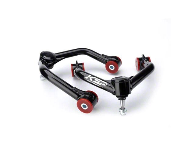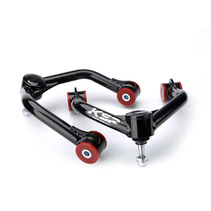 Performance and Handling. Upgrade your vehicle's suspension with our Front Upper Control Arms for 2 to 4-Inch Lift in black. This pair of control arms is expertly designed to work seamlessly with front leveling kits that offer 2 to 4 inches of lift. They retain your vehicle’s factory ride quality and also corrects ball joint angle and enhances wheel travel, ensuring a smooth and comfortable driving experience.