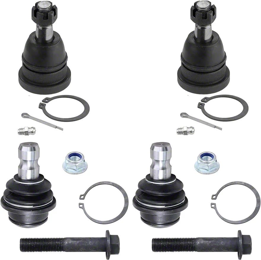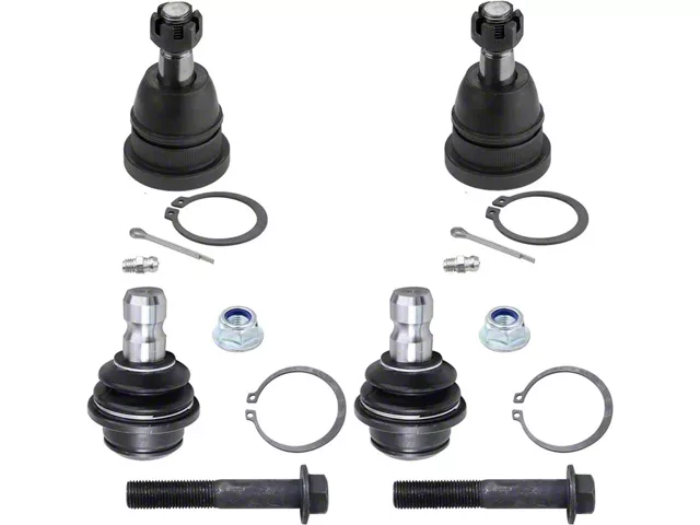 Secure and Free-Flowing Movement. Ensure smooth, safe, and trouble-free movements in your suspension system with the Front Upper and Lower Ball Joints. This set of 4 ball joints is designed for driver and passenger side placements. They are direct replacements to your malfunctioning stock ball joints to ensure restored functionality and efficient performance.