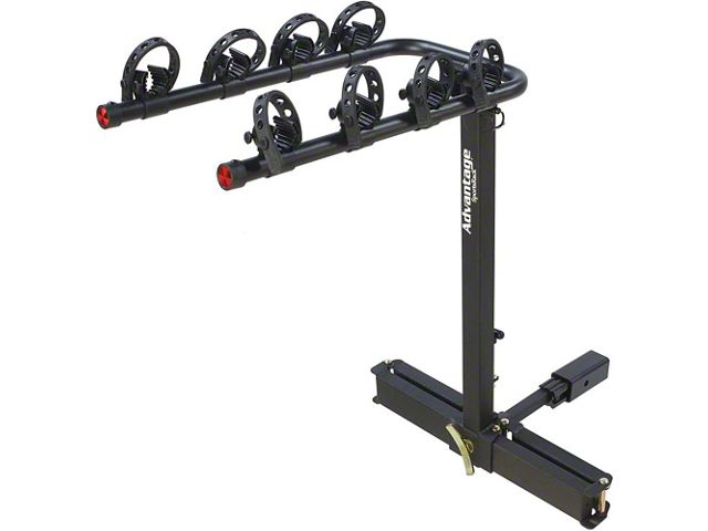 Up to 4 Bikes. Made for a universal fit, this GlideAWAY 2 Deluxe Bike Rack weighs 50 pounds and has a rated capacity of up to 150 pounds and 4 bikes. Crafted from heavy-duty steel, this rack allows the use of 2 and 1.25-inch hitches.