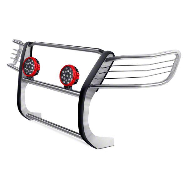Grille Guard with 7-Inch Red Round LED Lights; Stainless Steel (04-15 Titan)Find parts that fit my vehicle