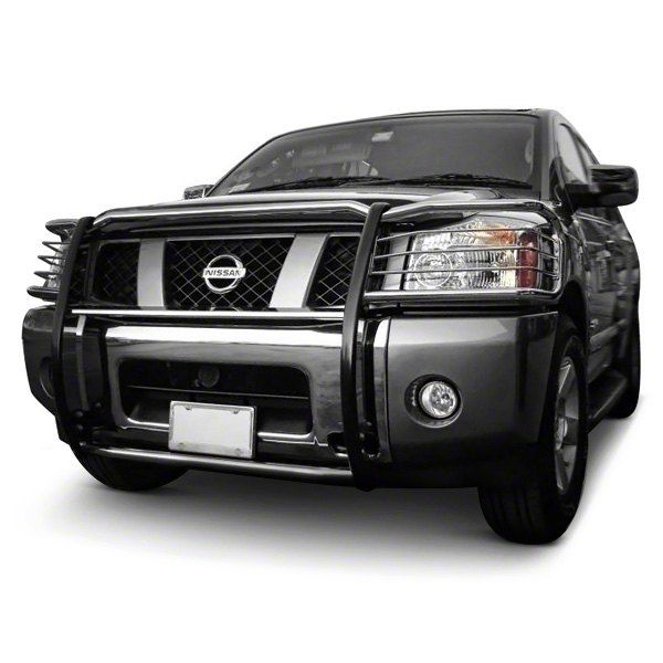 Protective. Made for the Nissan Titan, this Grille Guard features a solid and durable stainless steel construction with a protective full-width design. Meant to protect your ride’s front while not obstructing the engine bay’s air intake, this grille guard is a great upgrade to those that want an additional layer of protection for their ride.