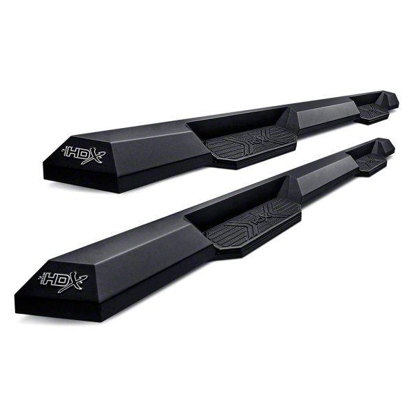 Premium Stepping Area. The HDX Xtreme Nerf Side Step Bars are constructed using high-quality stainless steel, ensuring exceptional durability and resistance to the rigors of daily use. The included injection-molded polymer step pad not only adds an element of safety with its non-slip surface but also complements the bars' overall sleek appearance. Finished in a textured black coating, these step bars not only resist corrosion but also give your vehicle a rugged and aggressive look. With a generous 5-inch step width, they provide easy access to your vehicle's cabin while being highly resistant to wear and tear, ensuring they'll stand the test of time.