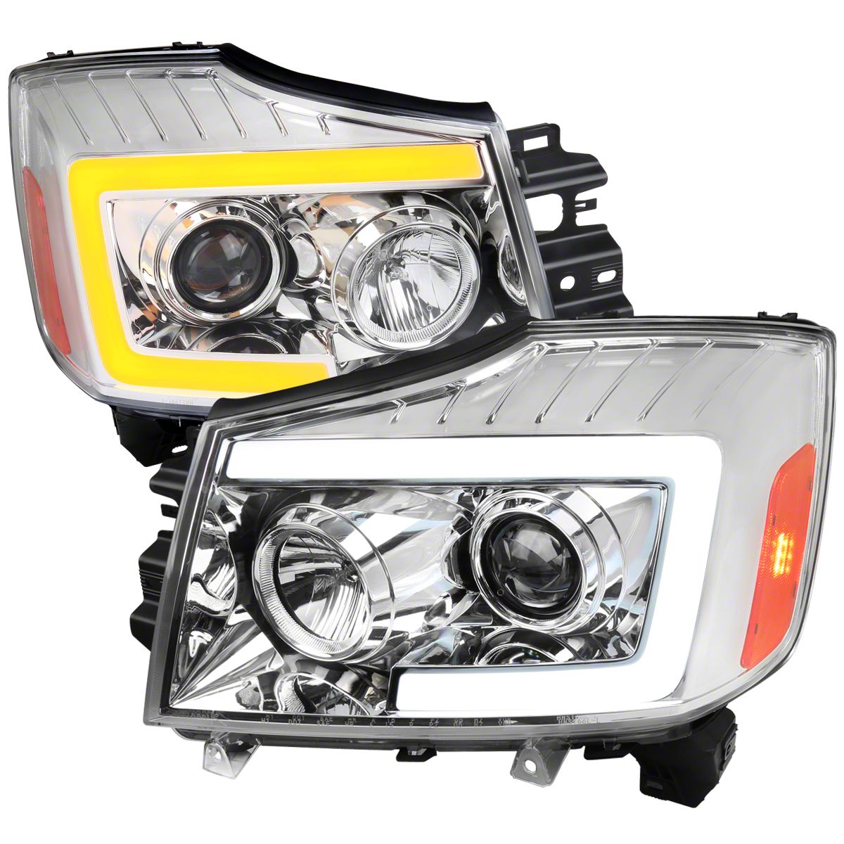 LED C-Bar Projector Headlights with Switchback Sequential Signal; Chrome Housing; Clear Lens (04-15 Titan)Find parts that fit my vehicle