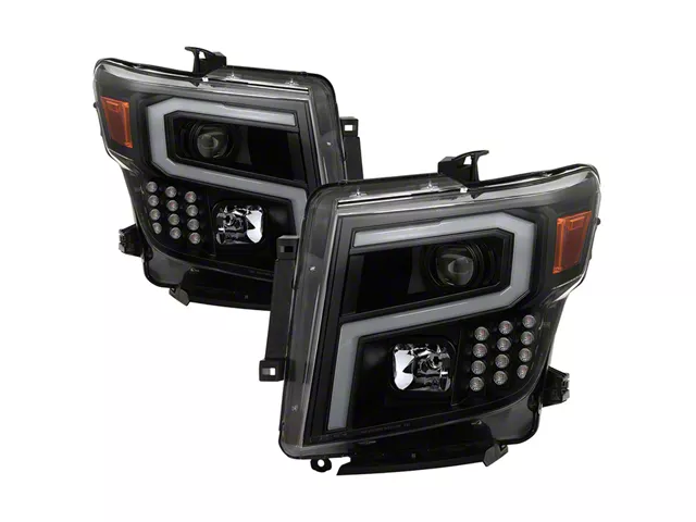 Advanced Projector Headlights. Elevate the look and functionality of your Titan equipped with factory halogen headlights with these Light Bar DRL Projector Headlights. Housed in a sleek black casing with a smoked lens, these headlights are designed to significantly improve nighttime visibility and safety, ensuring a clearer view of the road ahead.