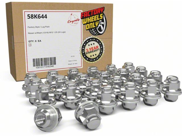 Application. The OEM Factory Style Chrome Lug Nut Kit; M12 × 1.25; Set of Twenty-Four fits 2004–2024 Titan models.