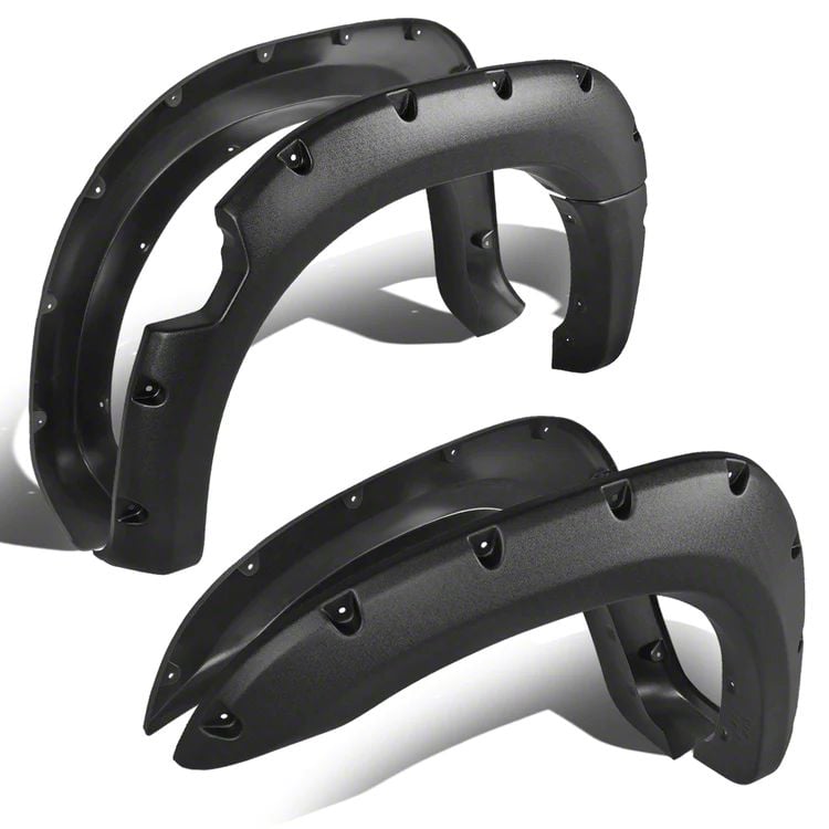 Construction and Appearance. Made from durable, UV-resistant plastic, these fender flares are built to withstand harsh conditions and resist fading. The textured black finish adds a stylish, rugged touch to your vehicle, making it stand out on and off the road.