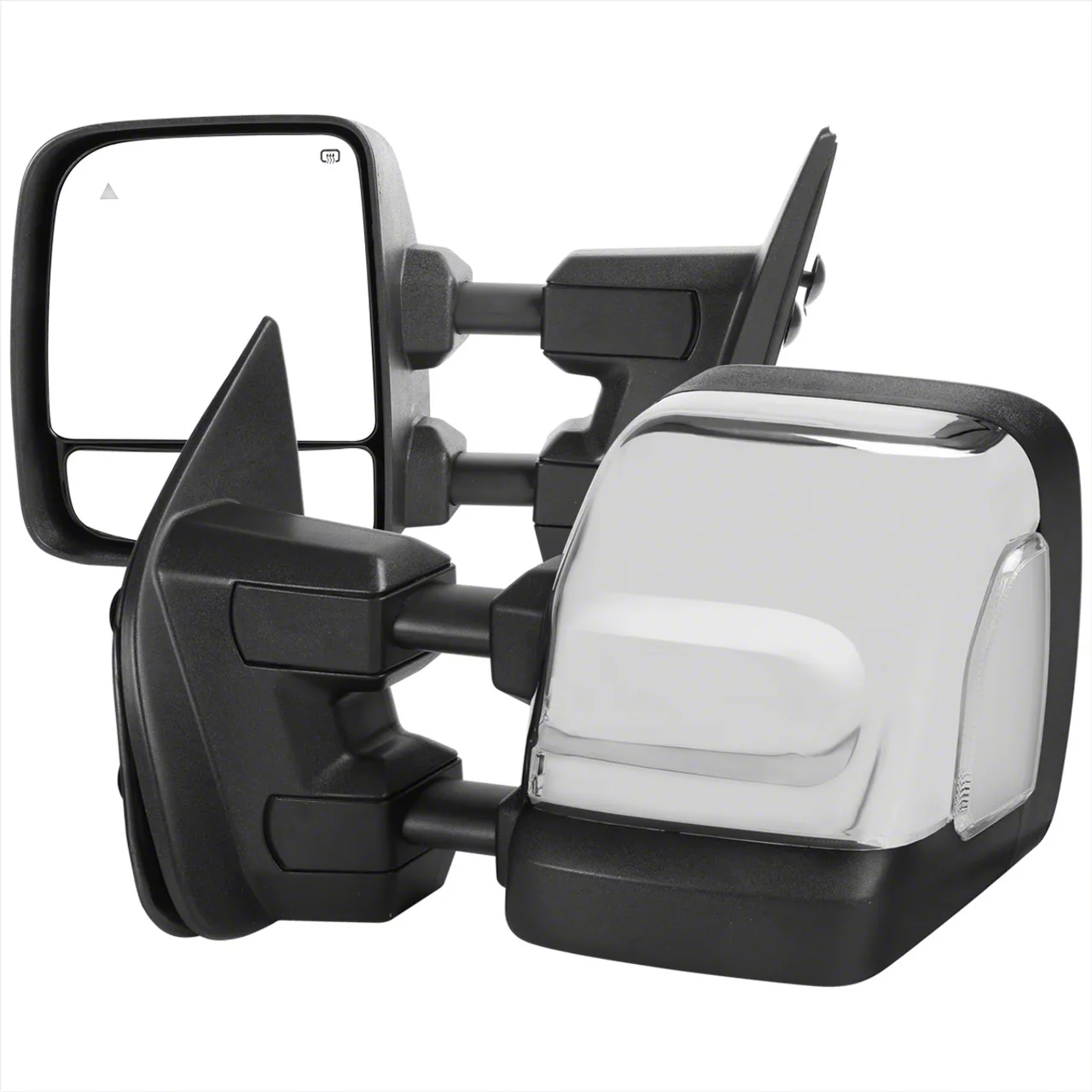 Powered Heated BSM Memory Manual Extendable Towing Mirrors with Clear LED Turn Signals; Chrome (16-24 Titan)Find parts that fit my vehicle