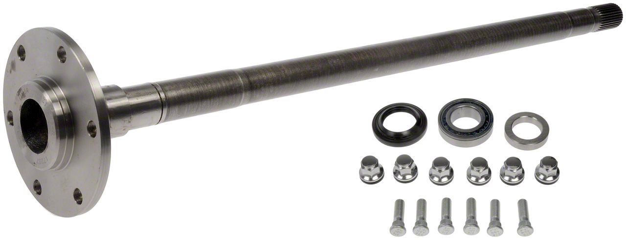 Construction and Appearance. Manufactured from high-strength steel, this rear axle shaft offers superior durability and resilience under heavy loads. Its corrosion-resistant coating helps protect against rust and wear, ensuring long-lasting performance in various driving conditions. Built to OEM standards, this axle shaft maintains factory ride quality and performance.