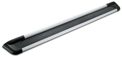 Extruded aluminum. Slip resistant rubber step area. Molded end caps add unique style. Cradle mounted boards. 5 year warranty.