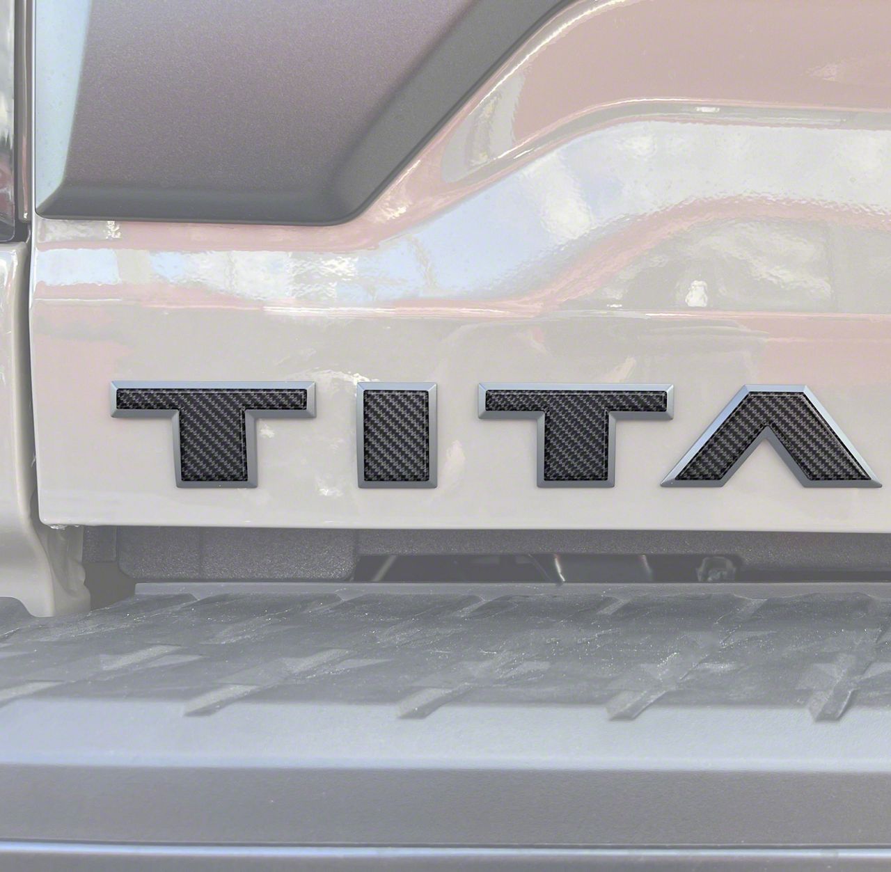 Premium Forged Carbon Fiber Styling. The Tailgate Letter Emblem Overlays offer a refined, high-end look with their forged carbon fiber design. Specifically made for the 2022-2024 Titan, these overlays provide a sleek and modern upgrade to the tailgate, delivering a custom fit with an OEM-like finish.