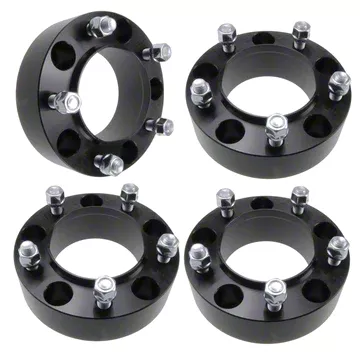 Premium-Grade Materials. These wheel spacers are machined from premium-quality billet T6 6061 aluminum in black. It is 2 inches thick, and the press-in studs of these spacers are made of grade 12.9 steel.