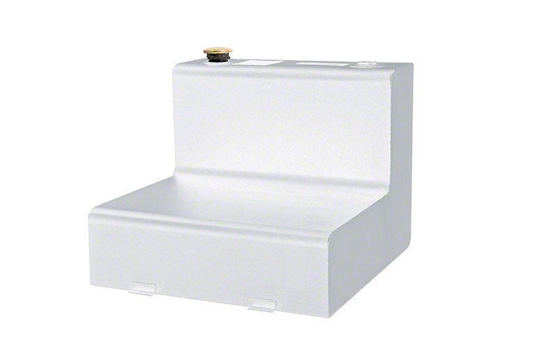 Dee Zee Transfer Tanks - A safe and convenient means for transporting non-flammable liquids. Steel, protected by white NRT(TM) (No Rust Technology) rust inhibitor powder coat finish. Radius curve design eliminates key weld pressure points. Feature stability baffles, lockable cap, 3/8" drainage plug, and venting coupler. Tanks are intended for private use (non-commercial). Not designed for use as an auxiliary fuel system. Not for use with gasoline. Does not meet title 49 of the United Stated Federal Registry.