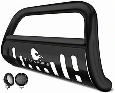 Black Horse Bull Bar Kit Skid Plate Satin Black Compatible with 2012-2023 Nissan NV1500|2012-2023 Nissan NV2500|2012-2023 Nissan NV3500|2016-2023 Nissan Titan XD-BB113206A-SP-PLFB