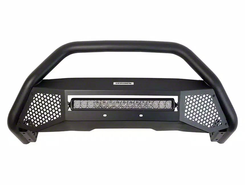 Protect your ride's front end with a heavy-duty bull bar from RealTruck, like the Go Rhino RC4 LR! This premium bull bar features the durable construction, industry-leading impact resistance, and aggressive styling you'd expect from Go Rhino, ensuring your ride is as safe as it is stylish.