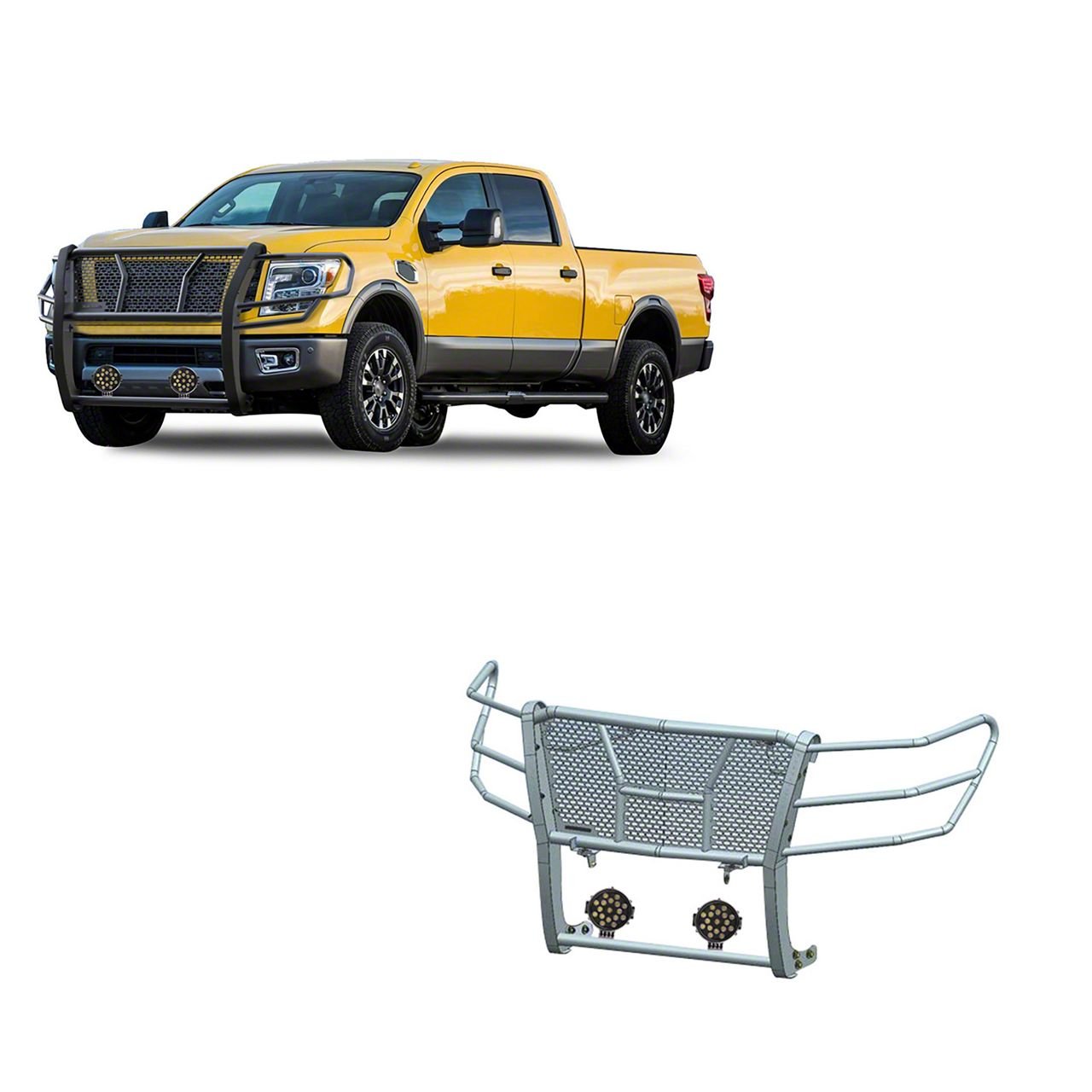 Rugged Heavy Duty Grille Guard with 7-Inch Black Round LED Lights; Black (16-24 Titan XD)Find parts that fit my vehicle